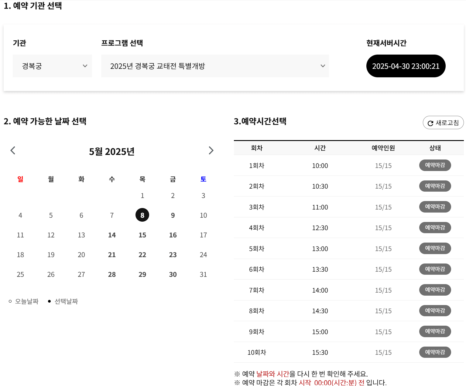 - 예약 시작일: 2025년 4월 30일(화) 오후 2시